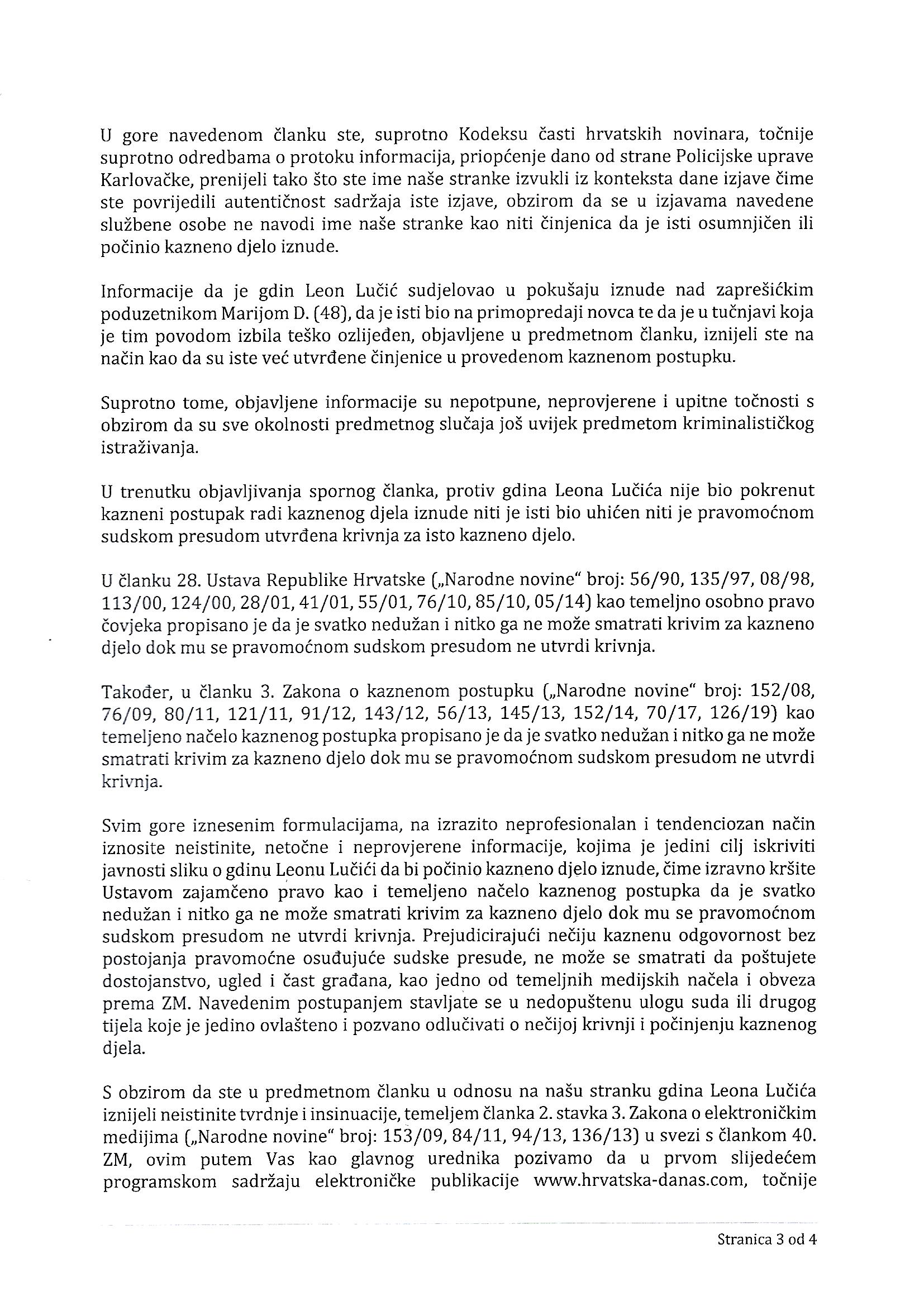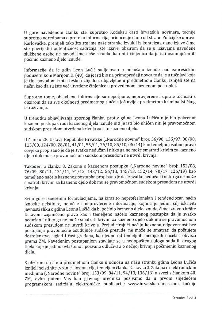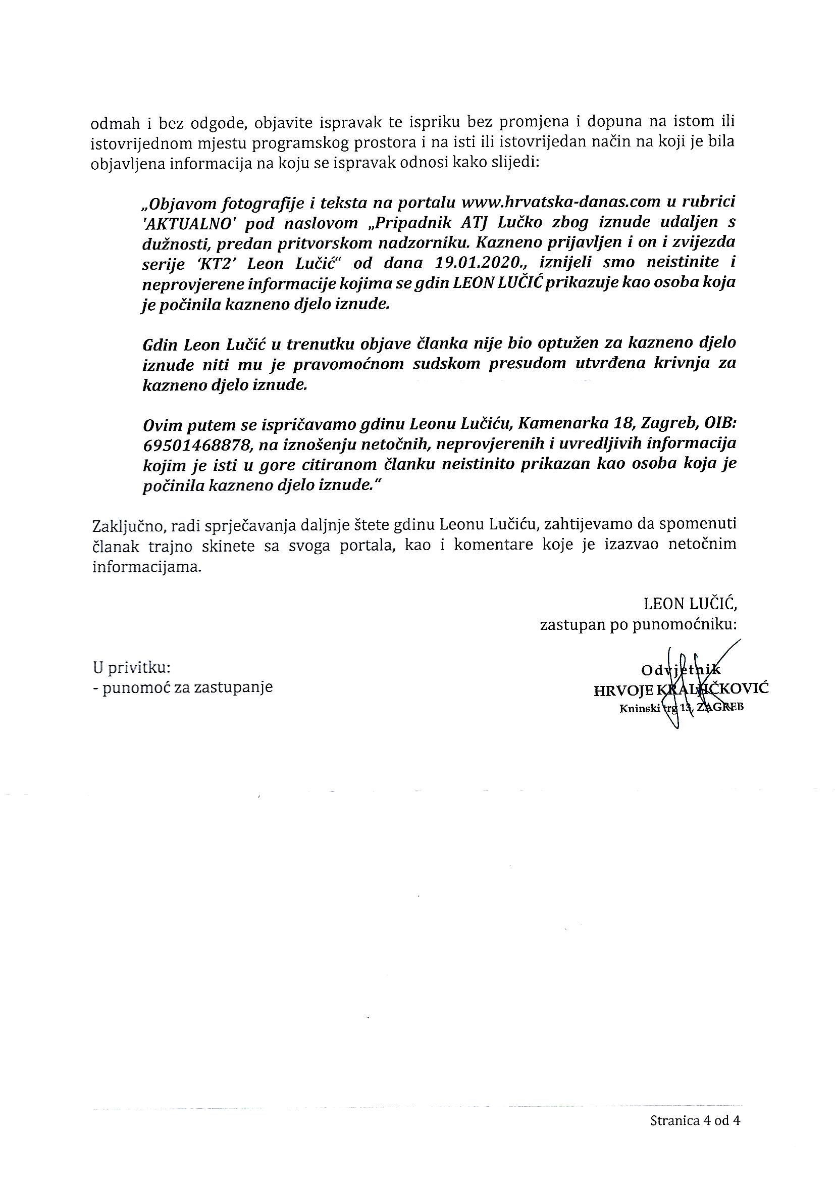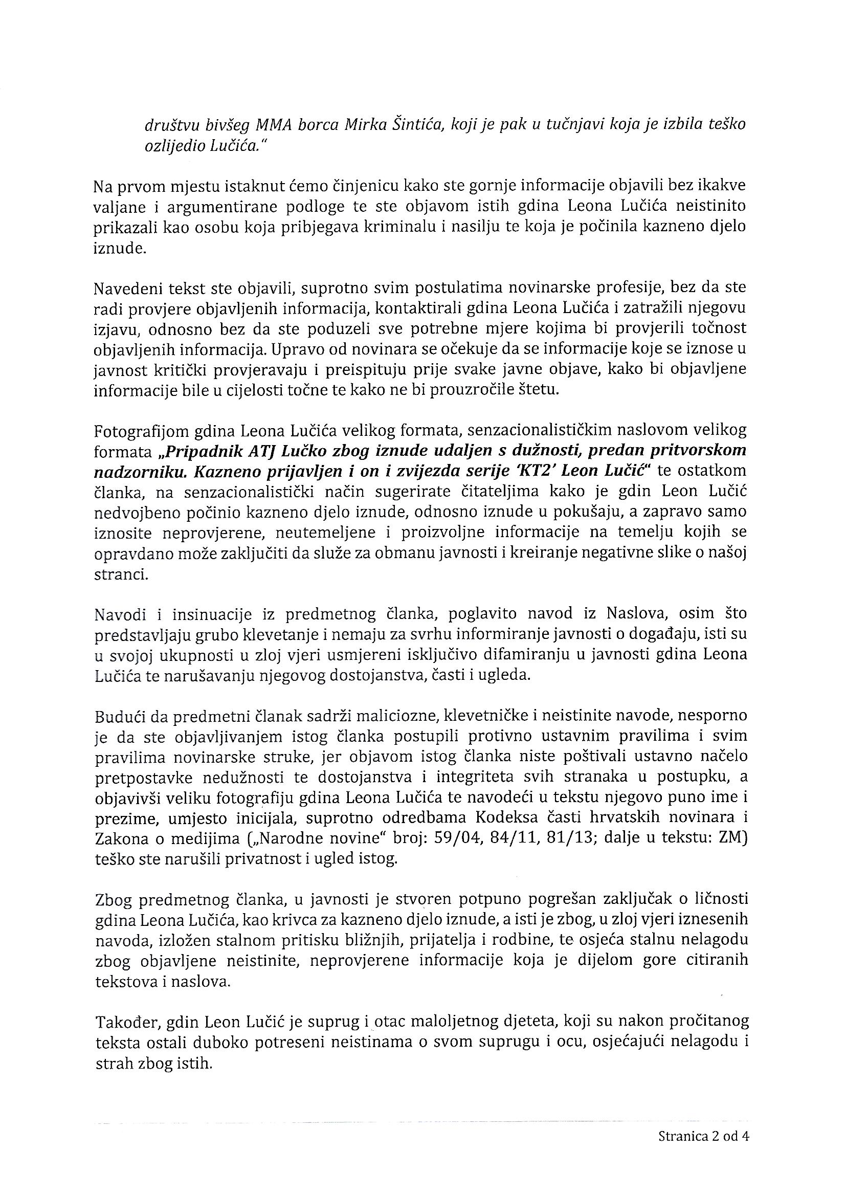 Demantij teksta Pripadnik ATJ Lučko zbog iznude udaljen s dužnosti, predan pritvorskom nadzorniku. Kazneno prijavljen i on i zvijezda serije ‘KT2’ Leon Lučić