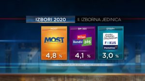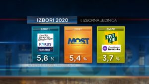 Mandat bi mogli uzeti i Most (6,2%) i koalicija oko Stranke s imenom i prezimenom (3,7%). Neodlučnih je 8,4 posto, a u ovoj izbornoj jedinici za dva granična mandata bore se četiri liste.