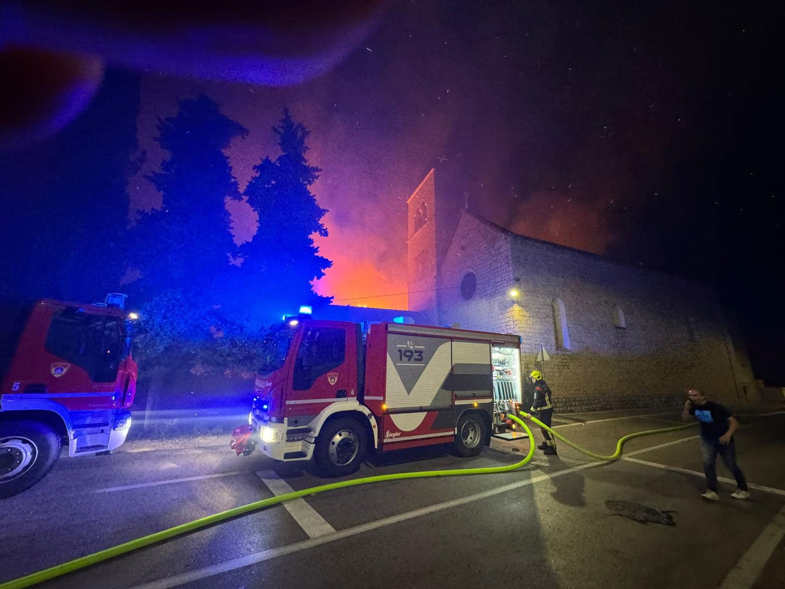 Sinoć oko 22 sata buknuo je veliki požar na dominikanskom samostanu i crkvi Sv. Križa u Arbaniji, krov samostana potpuno je izgorio.